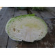 Имеет светло-зеленые плоскоокруглые кочаны, белые, однородные внутри.
